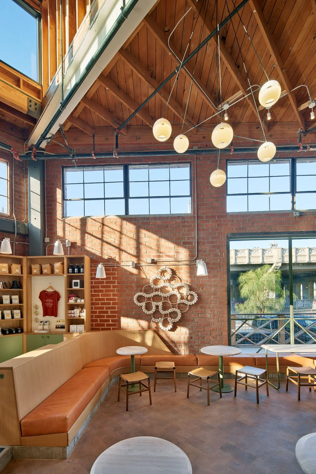We embraced maximal visual transparency with a space that reveals the coffee making wizard behind the curtain- from roasting to training to crafting that perfect cup. Our studio philosophy is that the life of a place is an equally important design element so we create architectural spaces that embrace and encourage life to happen within them. By carving up the height and breadth of the space we created unusual points of perspective and details.