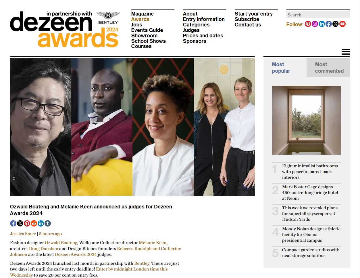 DESIGN, BITCHES ANNOUNCED AS JUDGES FOR DEZEEN AWARDS 2024